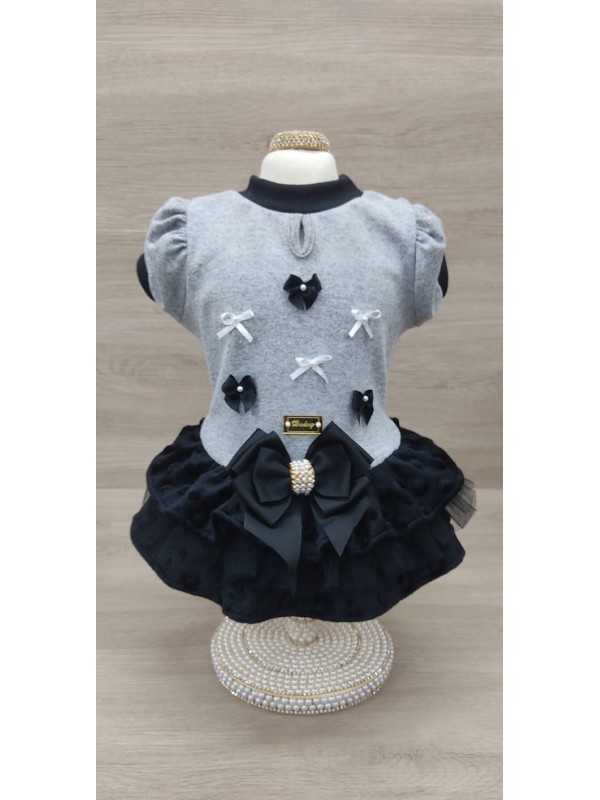 CÓD 1121 - VESTIDO MESCLA PRETO BUBBLE
