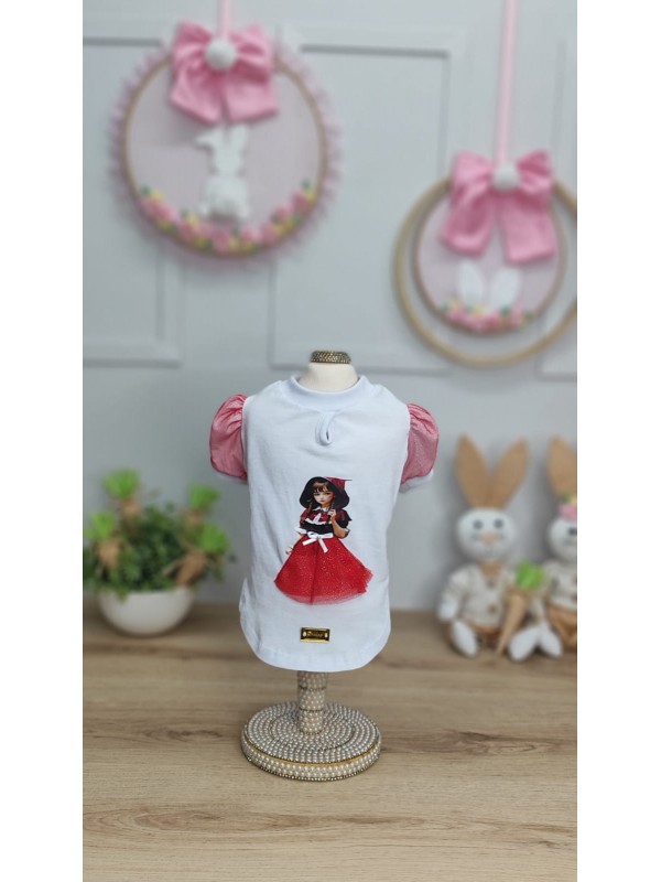 - Modelo: CÓD. F054 - BABY LOOK CHAPEUZINHO VERMELHO/BRANCA