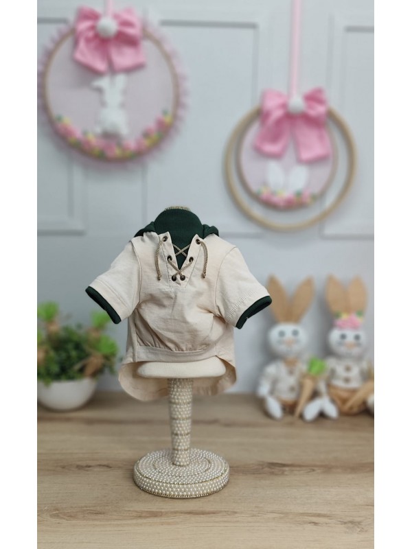 - Modelo: CÓD F063 - T-SHIRT PETER PAN CAMEL/VERDE