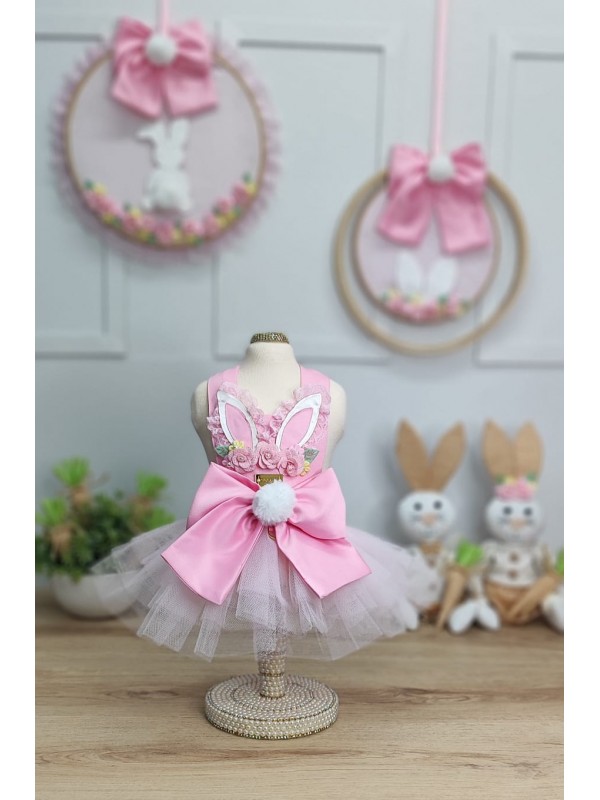 CÓD F078 - VESTIDO PÁSCOA ORELHUDO VINTAGE ROSA
