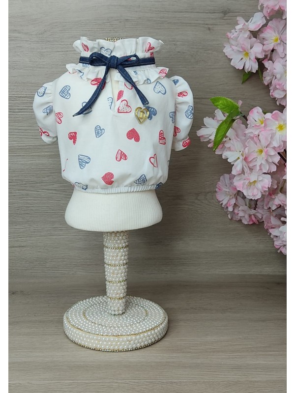 CÓD 1081 - BLUSA LOVE OFF CORAÇÕES VERMELHO/AZUL