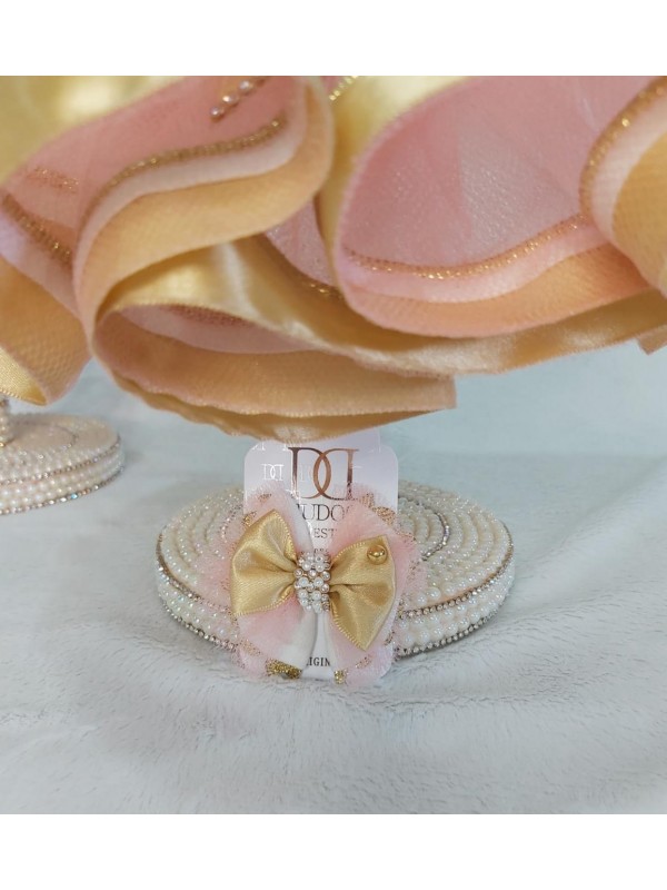 - Detalhe em sianinha, tule, pérolas e strass.
